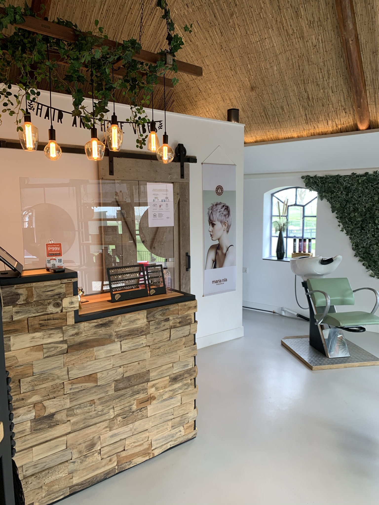 De warm & sfeervol ingerichte kapsalon is gevestigd in een mooie comfortabele hooiberg met veel lichtinval. Vanuit de kappersstoel is er zicht op de weilanden en dit geeft de juiste Vibe voor een ontspannen gevoel. Laat je verwennen en geniet van je kappersbezoek!